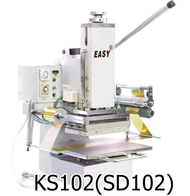 รุ่น KS101(SD101) ใช้มือโยก ขนาด 8x9cm และ รุ่น KS102(SD102) ใช้มือโยก ขนาด 20×30 cm (สีขาว) เป็น เครื่องปั๊มฟอยล์ กึ่งอัตโนมัติขนาด A4 ระบบ – มือโยก สามารถใช้ ดึงฟอยล์ อัตโนมัติ นับจำนวนครั้งในการปั๊ม ตั้งเวลาในการปั๊มได้ แช่ค้างไว้ 0-6 วินาที ปรับอุณหภูมิให้คงที่ 0-300 องศา ลักษณะโต๊ะวางงานเป็นเหมือนลิ้นชัก ดึงเข้าออกได้ ปรับสูง-ต่ำในการปั๊มได้